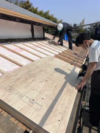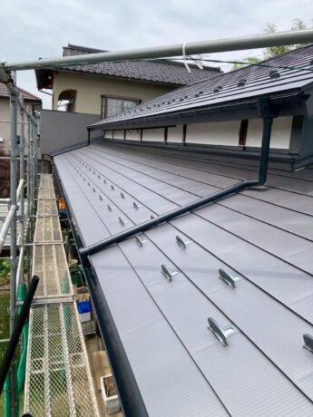 今回の工事では、断熱性・遮熱性に優れた屋根材へと改修。