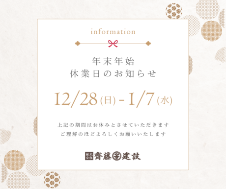 2025年12月28日(日)〜2026年1月7日(水)の期間休業とさせていただきます。