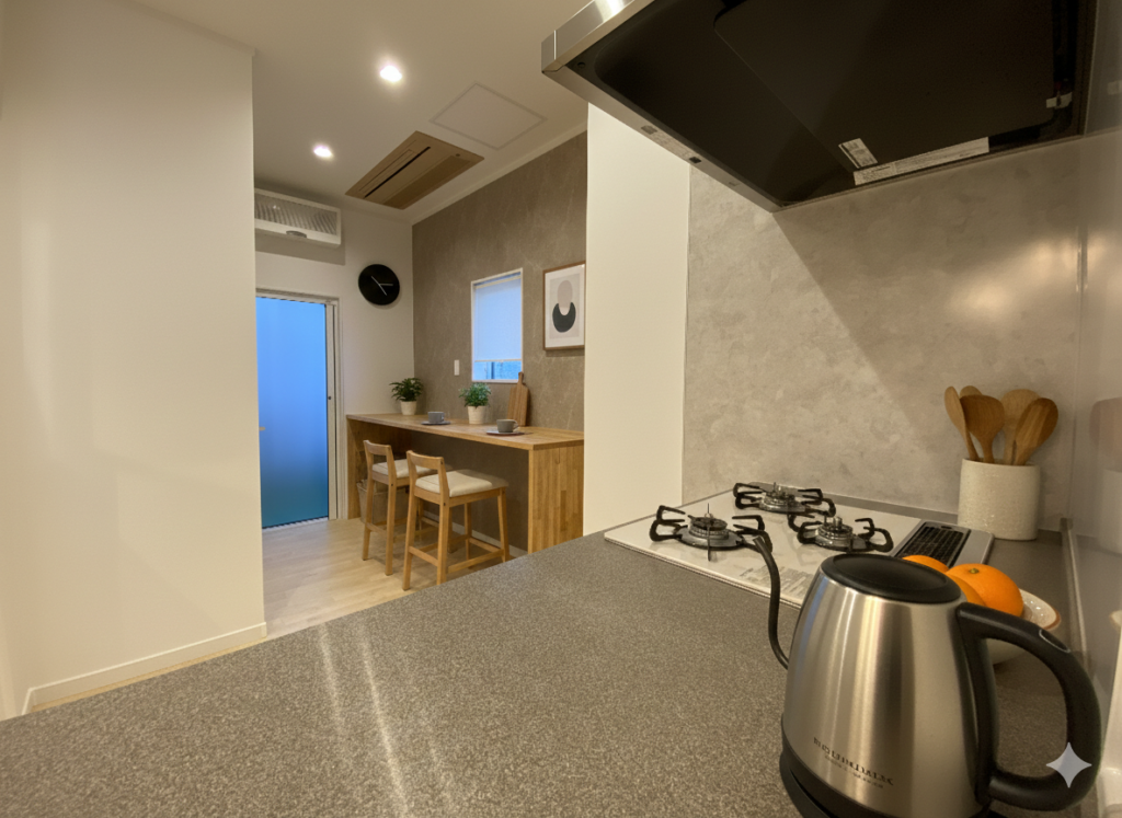 キッチンからリビング、そして廊下の先まで視線が抜ける開放的な間取りは、家族の気配をいつも身近に感じさせてくれます。