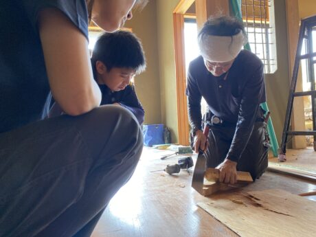 この日の現場では、大工さんと設計が床を前に立ち止まり、