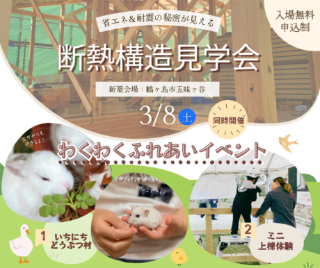 ▶建てたあとでは隠れてしまう、お家の大事な部分をご覧頂けます ▶自社大工のしっかりとした仕事を、ご自身の目で確かめて下さい ▶「入った瞬間暖かい」高性能住宅について体験頂けます! ▶ふれあいイベントも開催!お子様もご一 […]
