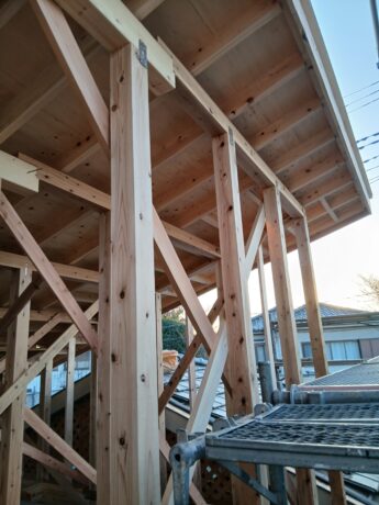 屋根工事が、ひとつ次の段階へ進みました。 断熱材の上に、野地板を一枚一枚丁寧に張っていきます。青い断熱材と、整然と並ぶ合板。空の青さと重なって、とてもきれいな現場でした。 屋根は、骨組みだけでは完成しません。面として強さ […]