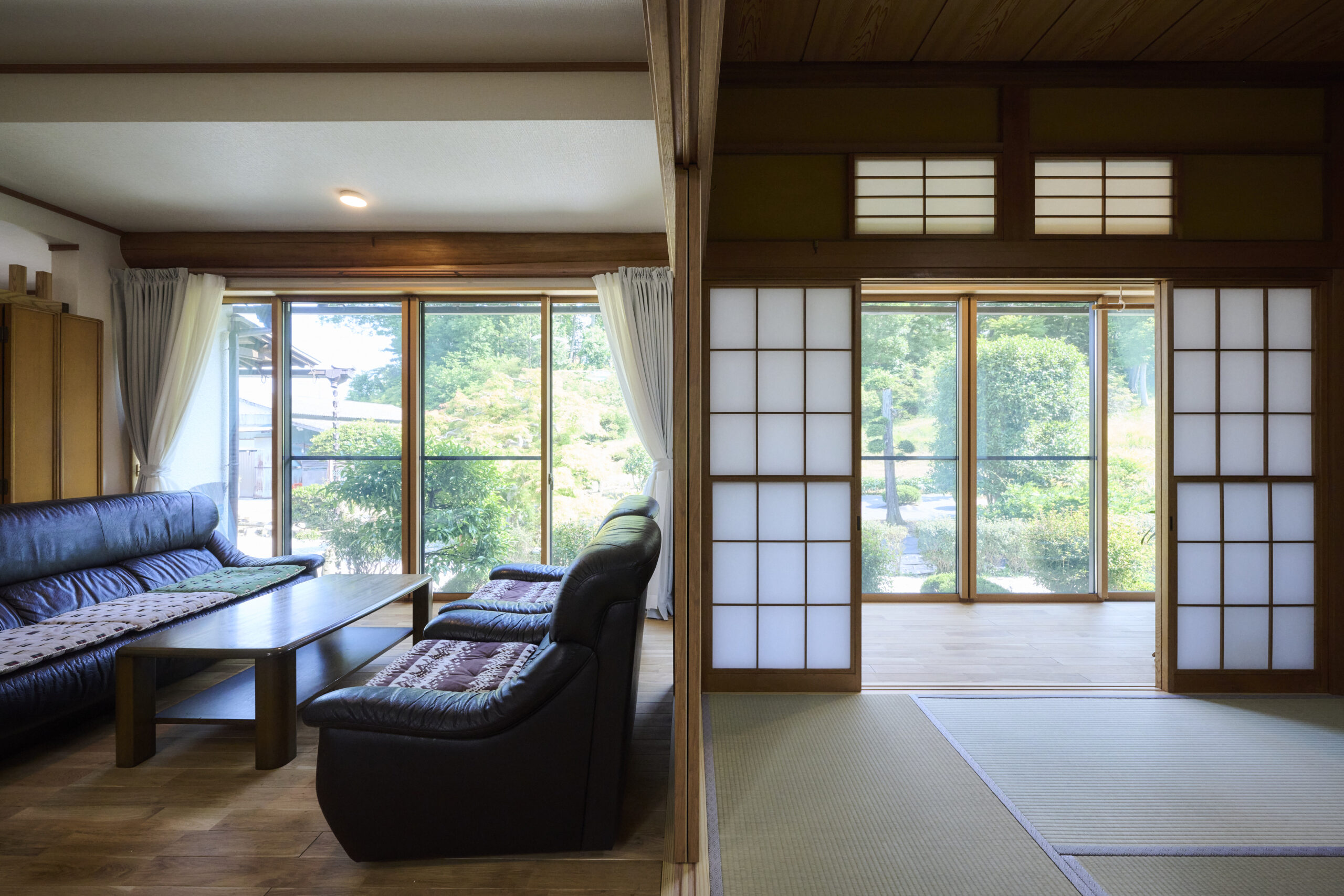 意匠性のある欄間も再利用して旧家の趣を残しながら、